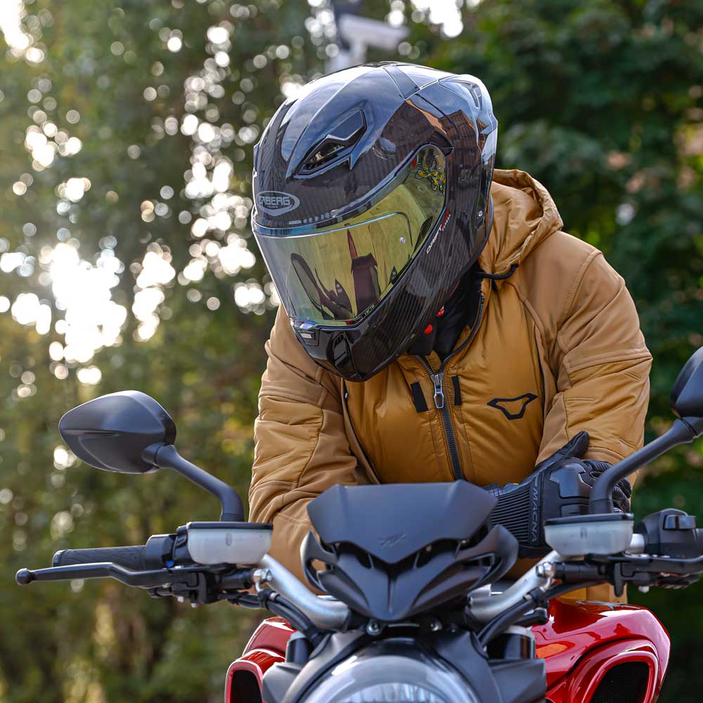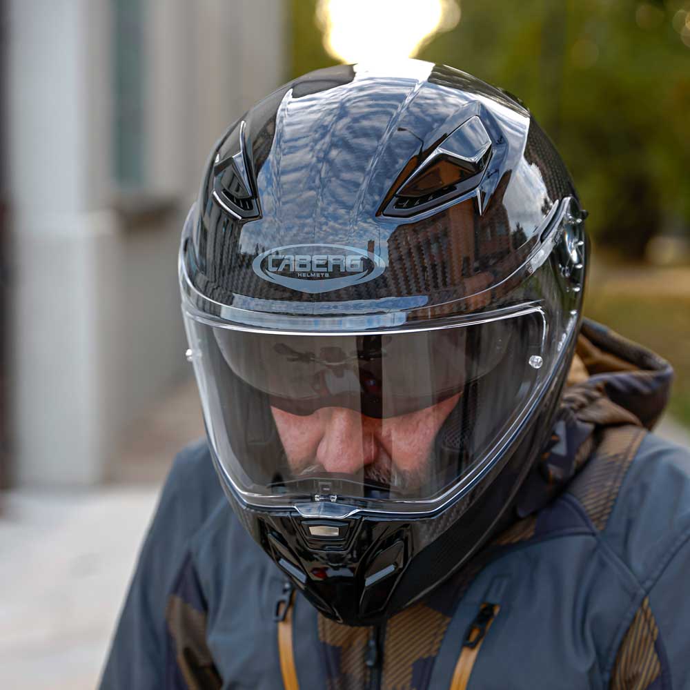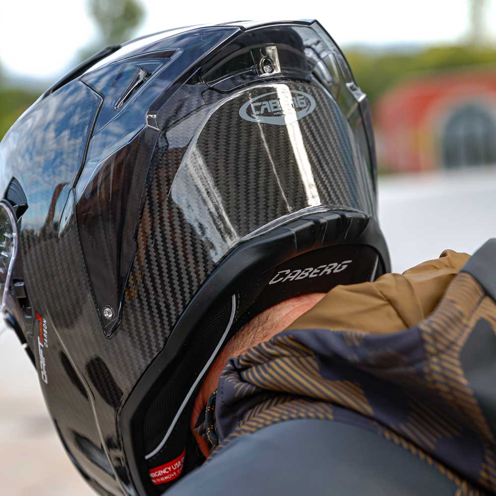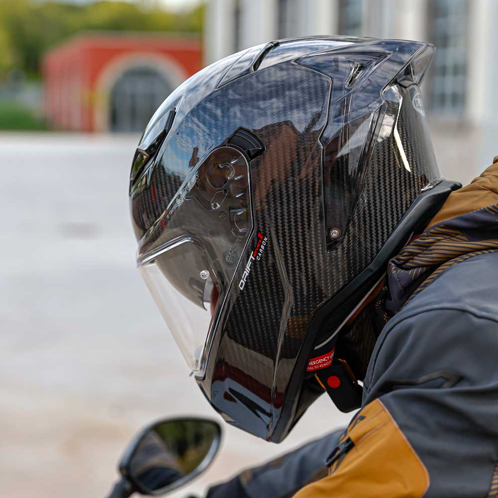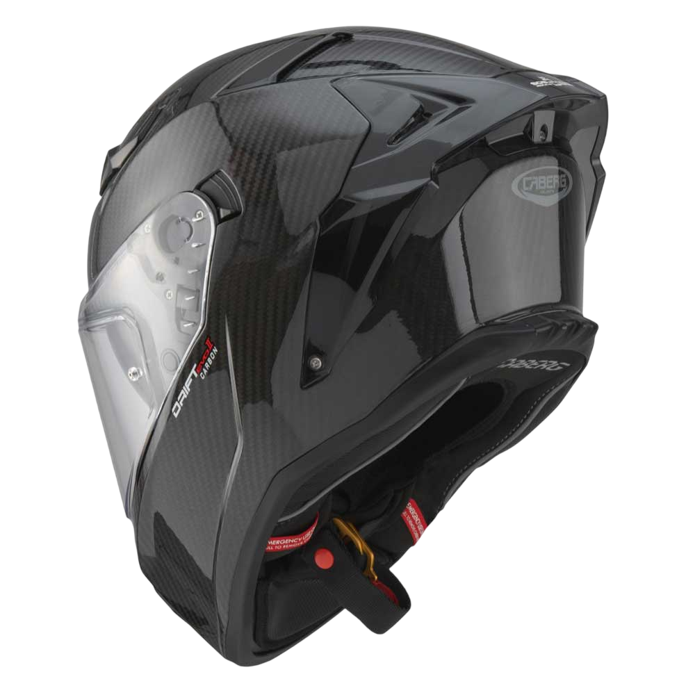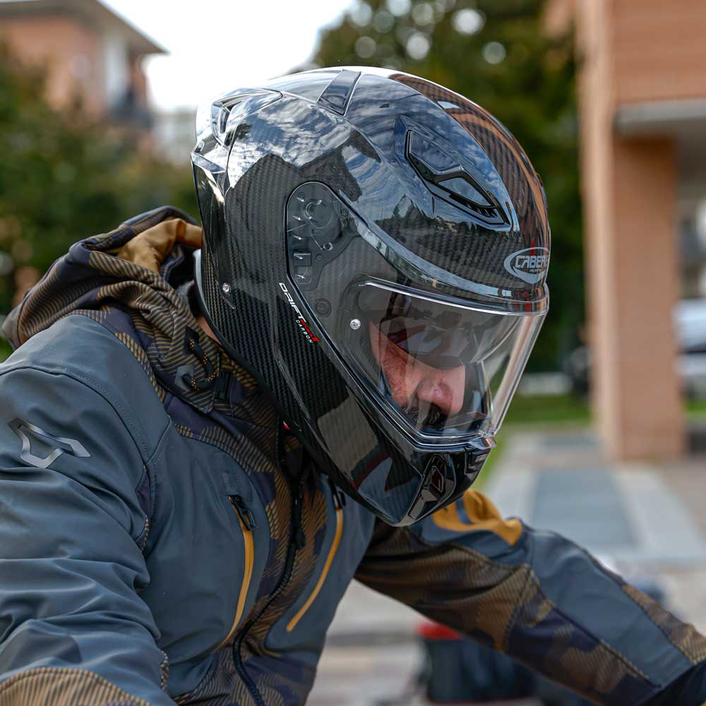 DRIFT EVO II CARBON is Caberg full-face helmet, designed for demanding touring. With an integrated sunshade visor, a carbon and fiber glass outer shell in two sizes, 4 air vents and 4 air extractors, and cheek pads quick release system in case of emergency. ECE 22.06 approved, it also offers the CABERG SOS MEDICAL ID device for emergencies.