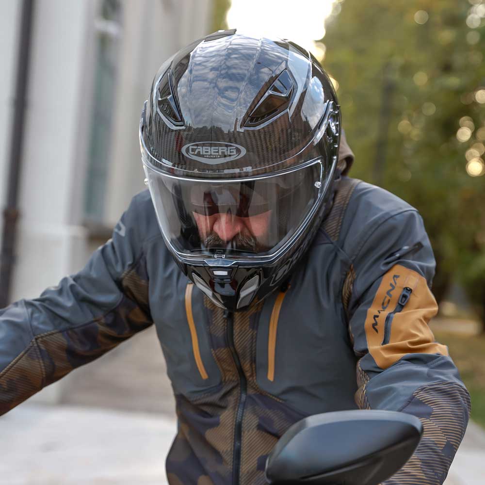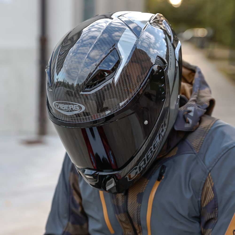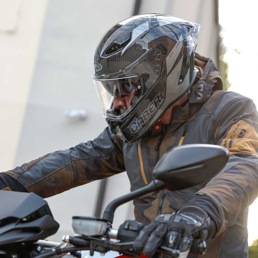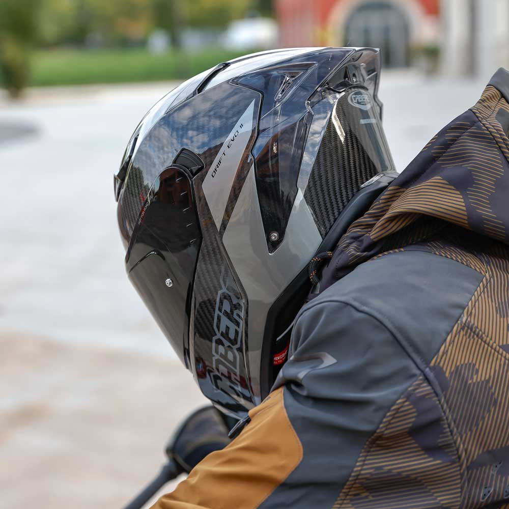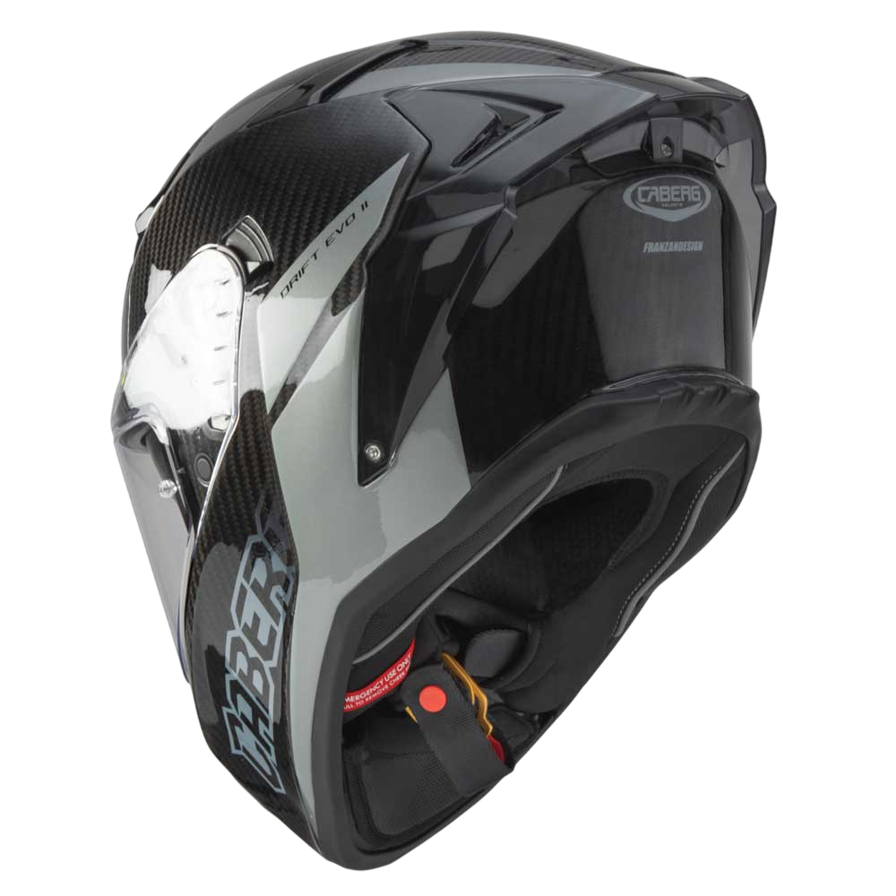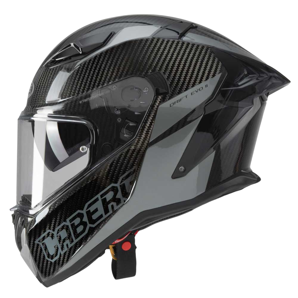 DRIFT EVO II CARBON is Caberg full-face helmet, designed for demanding touring. With an integrated sunshade visor, a carbon and fiber glass outer shell in two sizes, 4 air vents and 4 air extractors, and cheek pads quick release system in case of emergency. ECE 22.06 approved, it also offers the CABERG SOS MEDICAL ID device for emergencies.