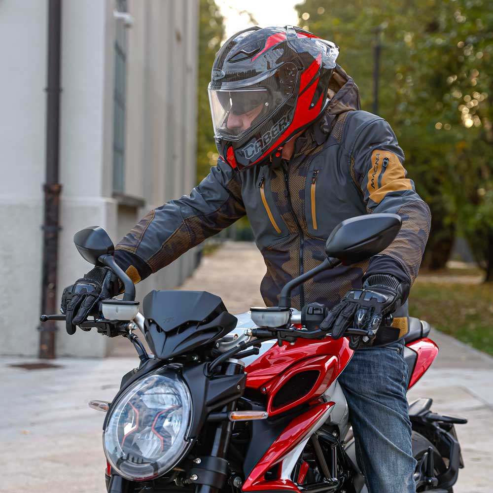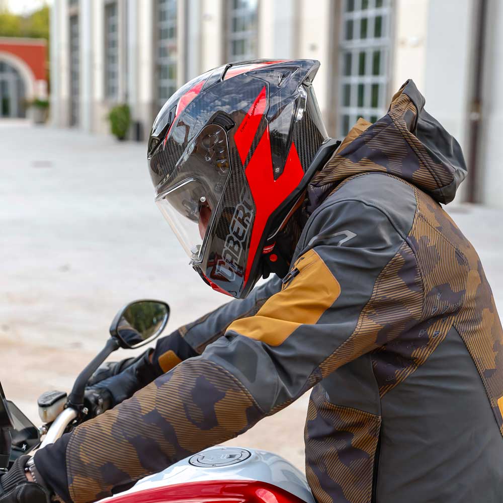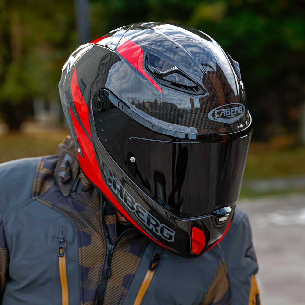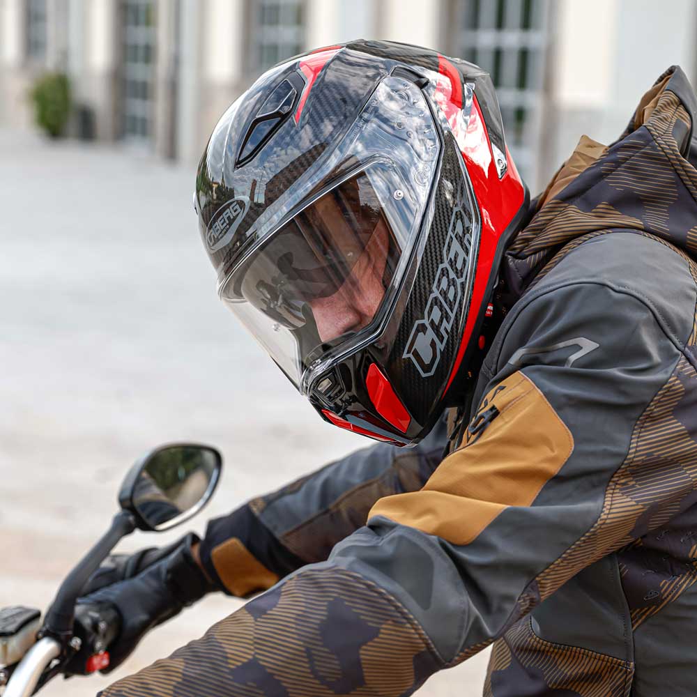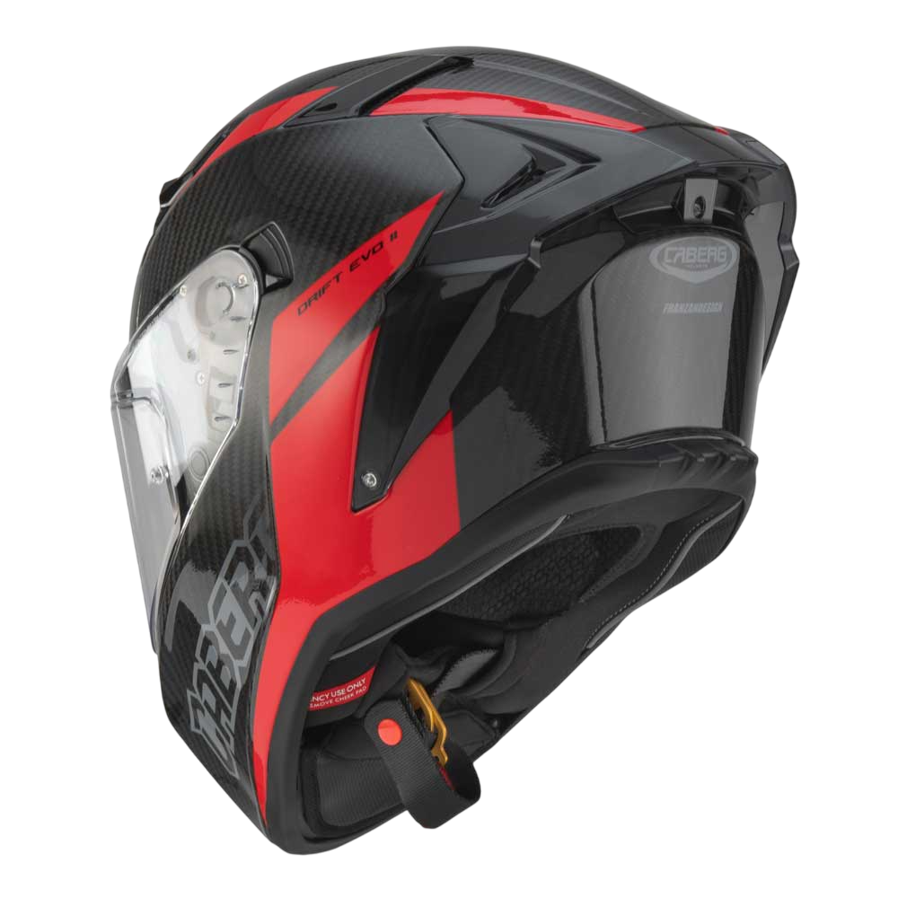 DRIFT EVO II CARBON is Caberg full-face helmet, designed for demanding touring. With an integrated sunshade visor, a carbon and fiber glass outer shell in two sizes, 4 air vents and 4 air extractors, and cheek pads quick release system in case of emergency. ECE 22.06 approved, it also offers the CABERG SOS MEDICAL ID device for emergencies.