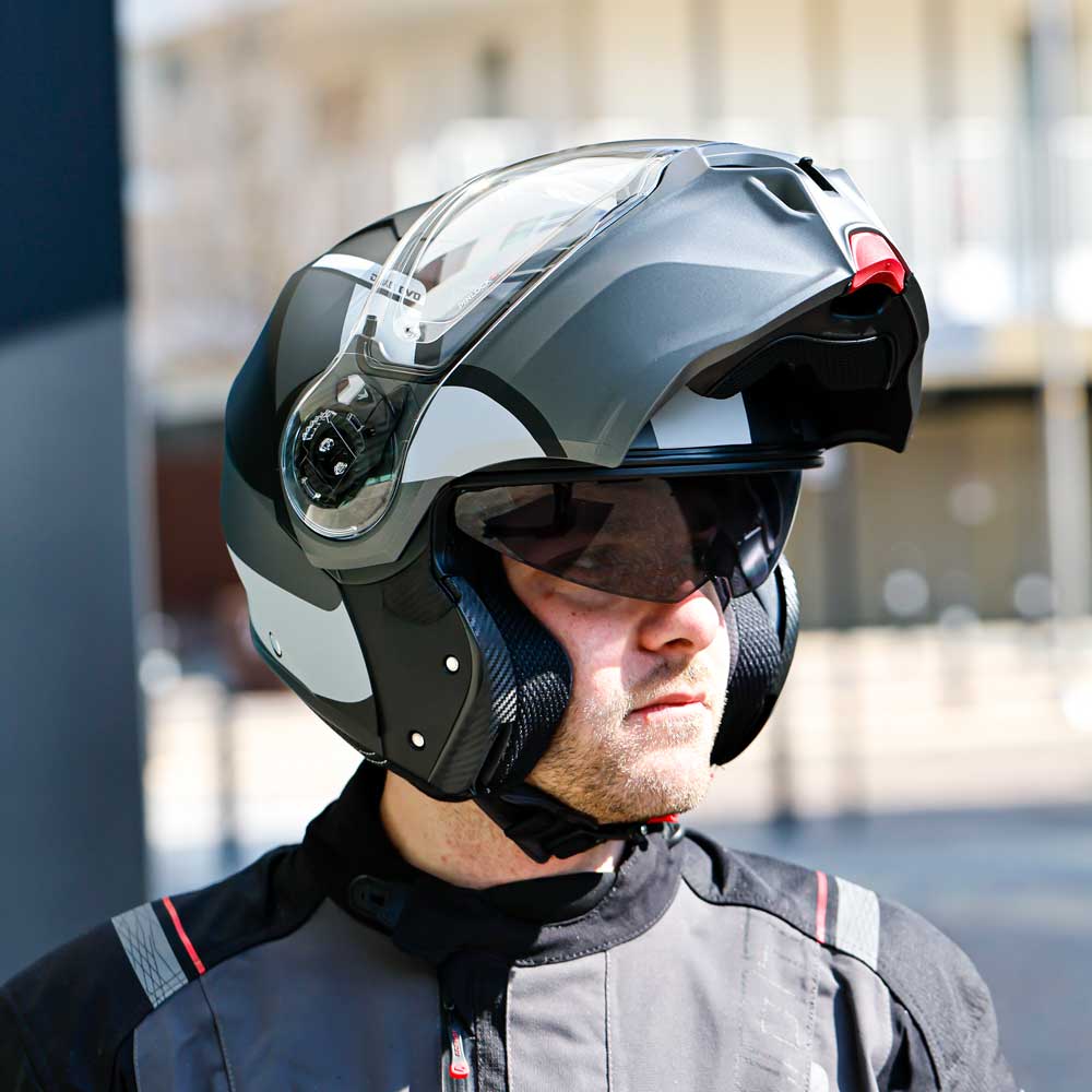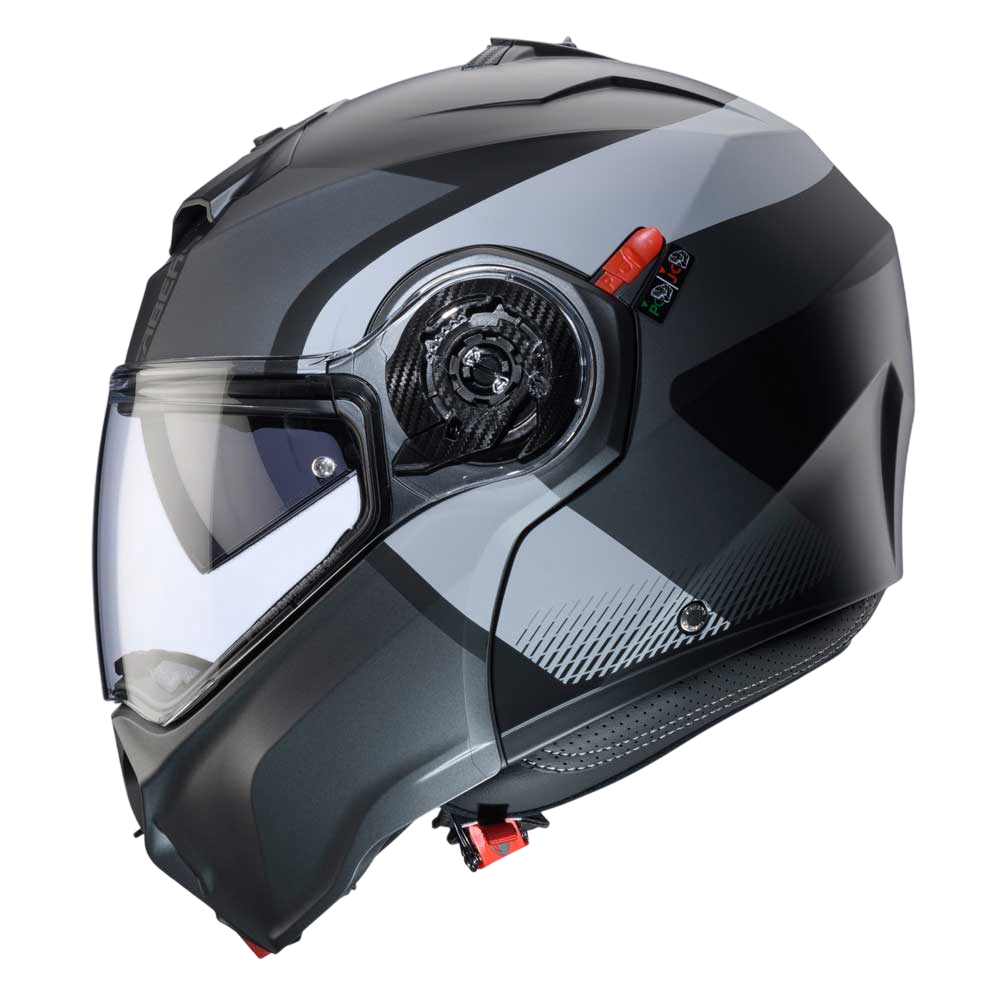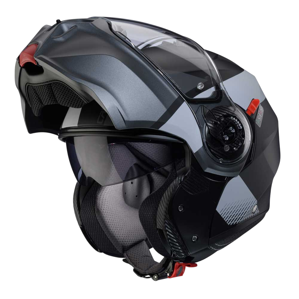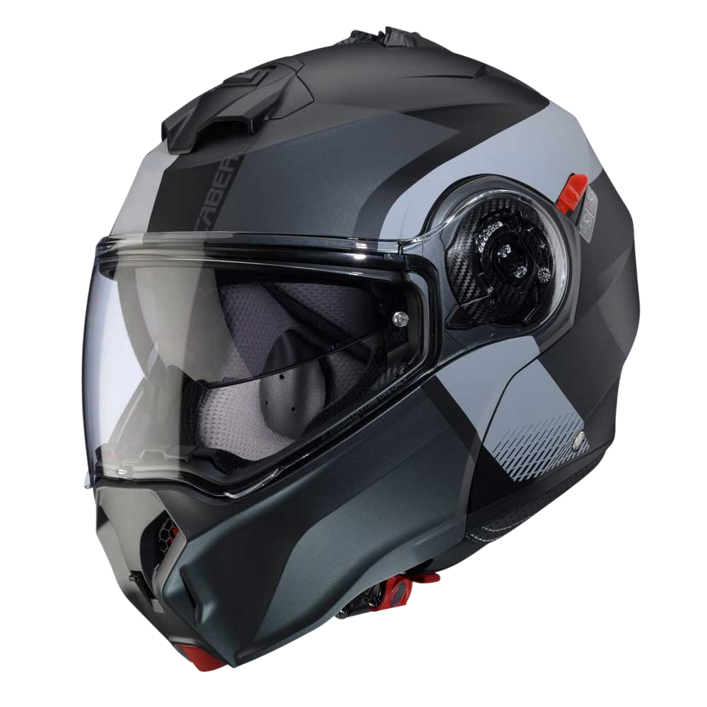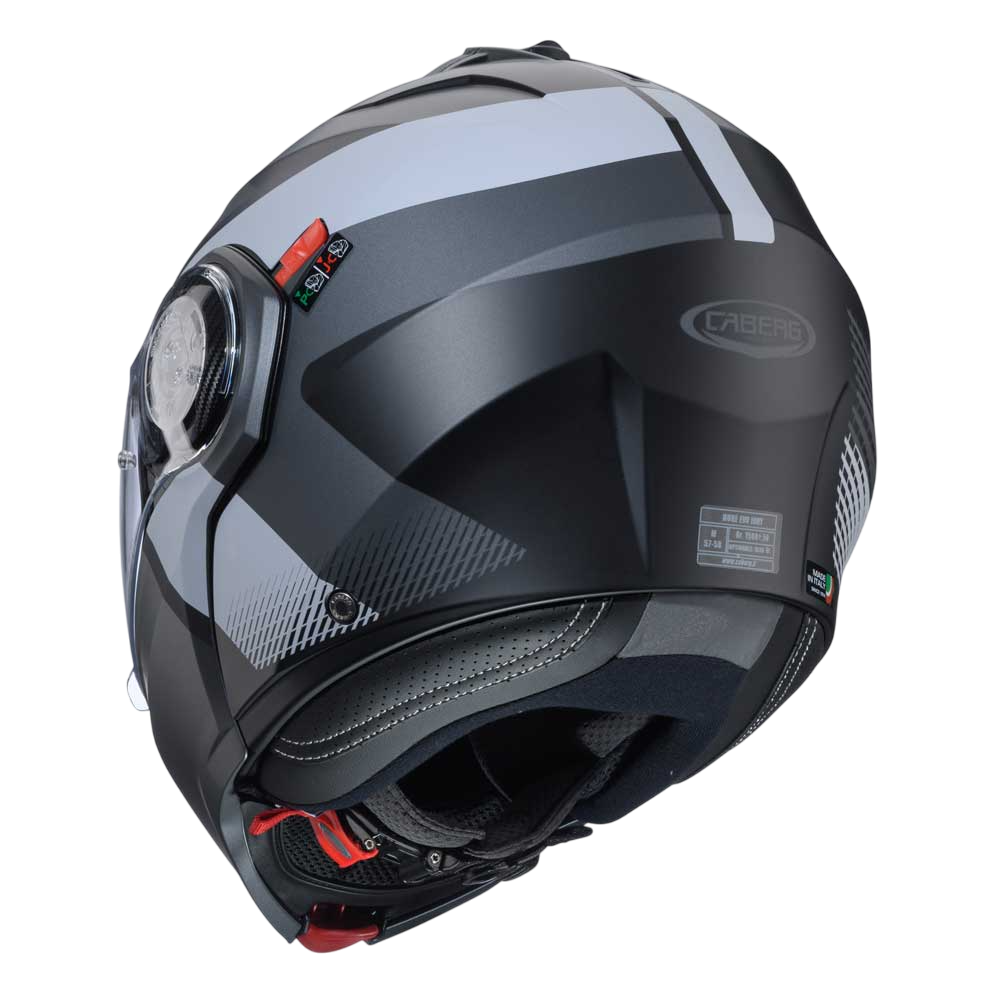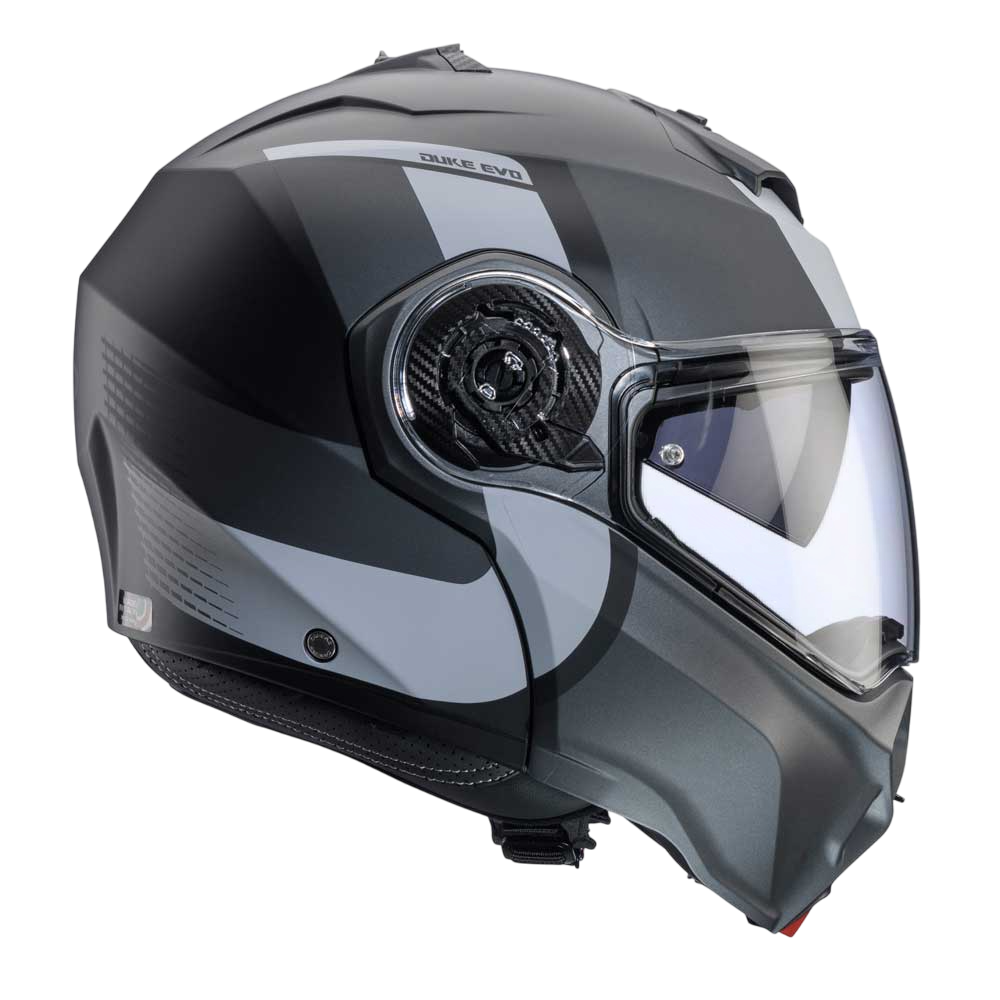 DUKE EVO is the evolution of Caberg’s DUKE helmet, ECE 22.06 approved, with breathable fabrics and new mechanisms for chin guard and visor opening. Equipped with Double Visor Tech and compatible with the PRO SPEAK EVO, it comes in various colours and graphic versions.