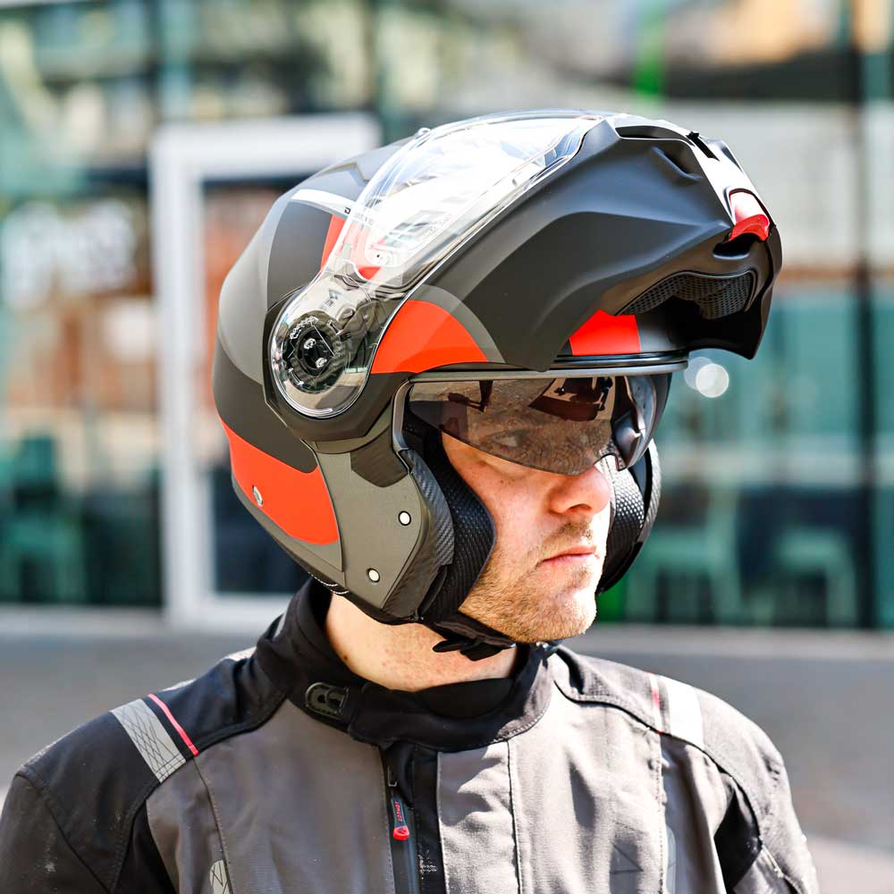 - Double visor (clear + smoke)