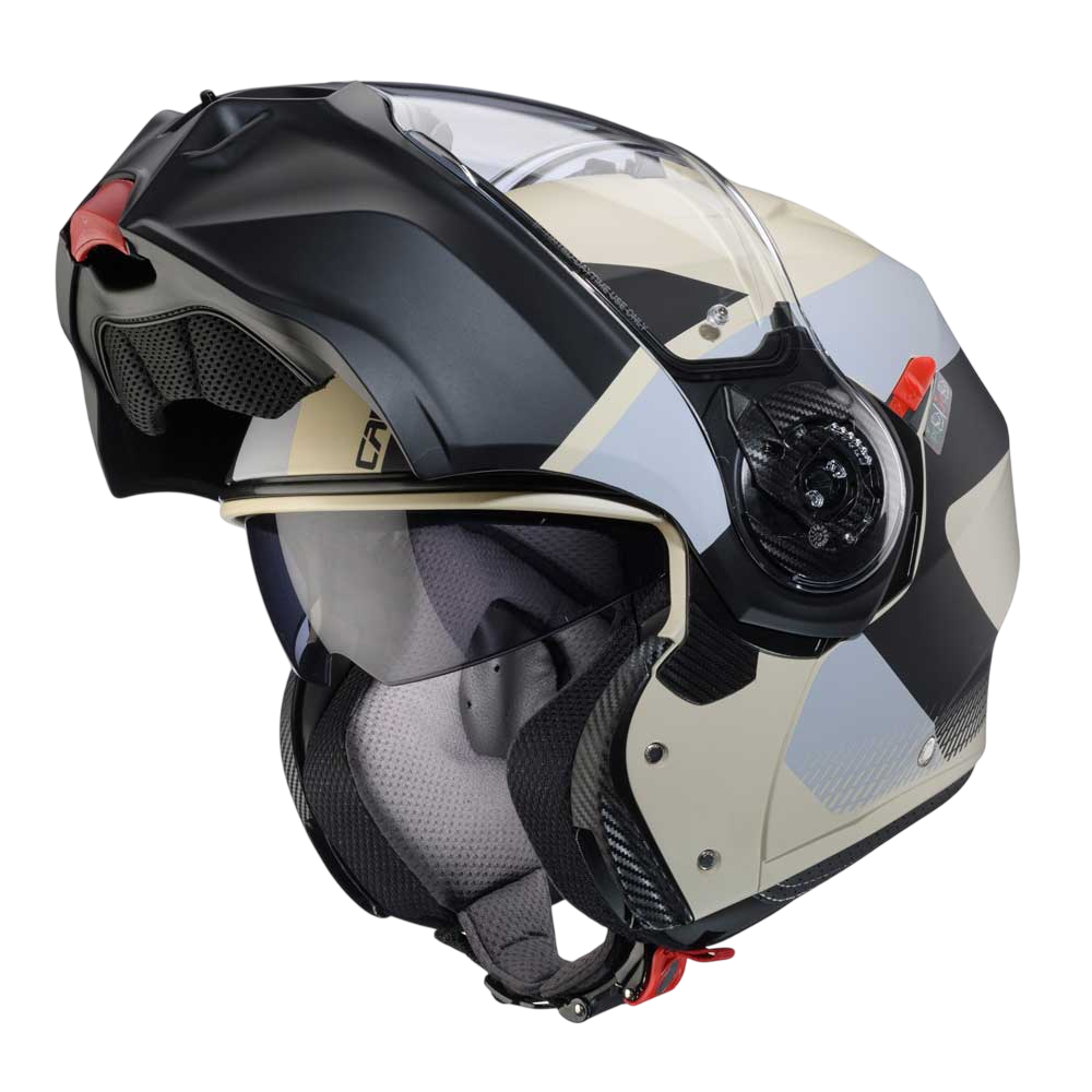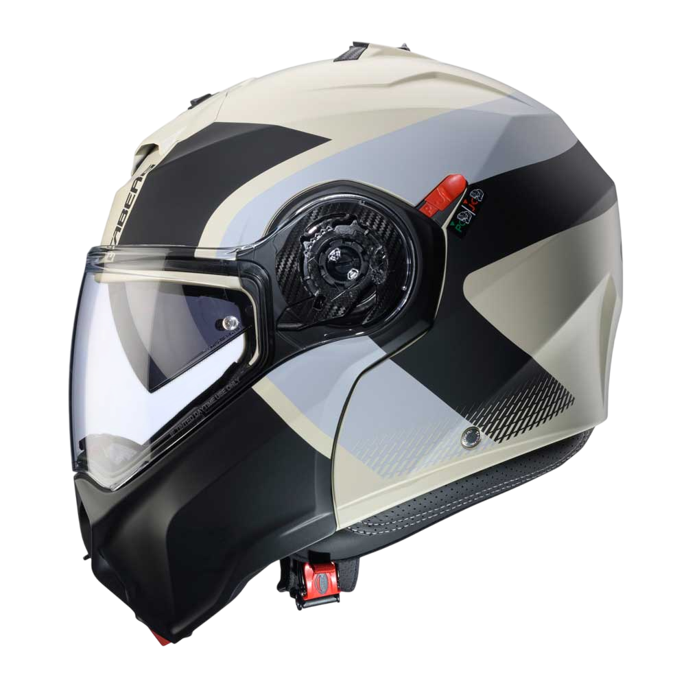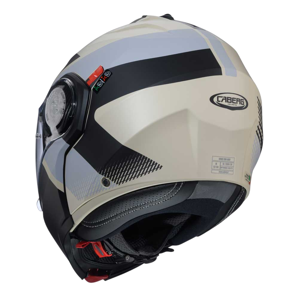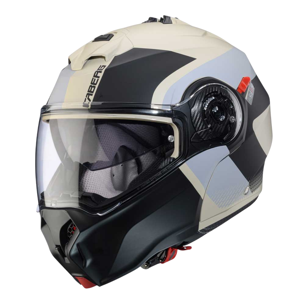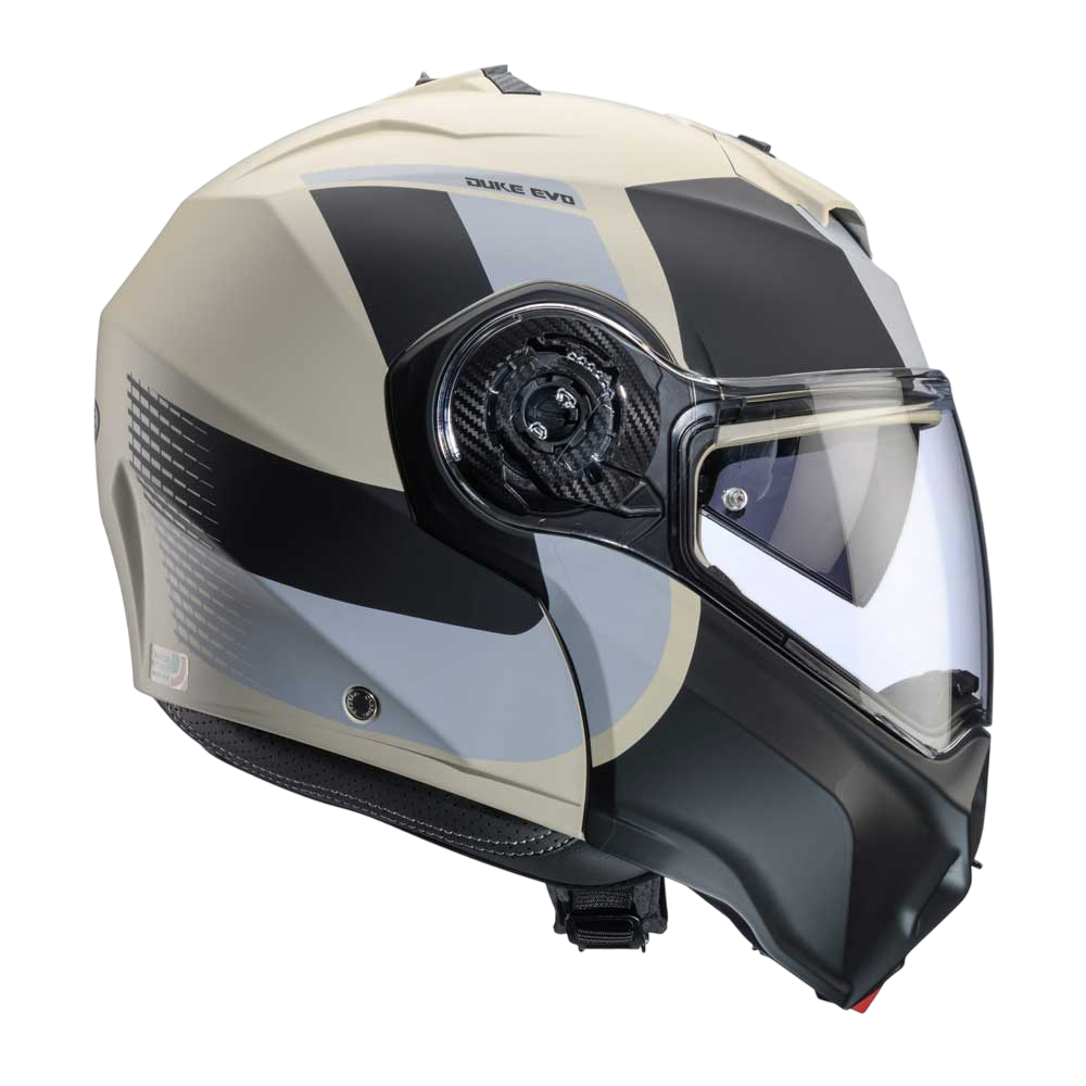DUKE EVO is the evolution of Caberg’s DUKE helmet, ECE 22.06 approved, with breathable fabrics and new mechanisms for chin guard and visor opening. Equipped with Double Visor Tech and compatible with the PRO SPEAK EVO, it comes in various colours and graphic versions.