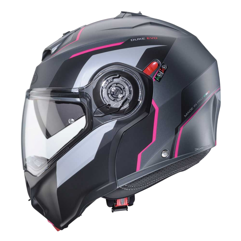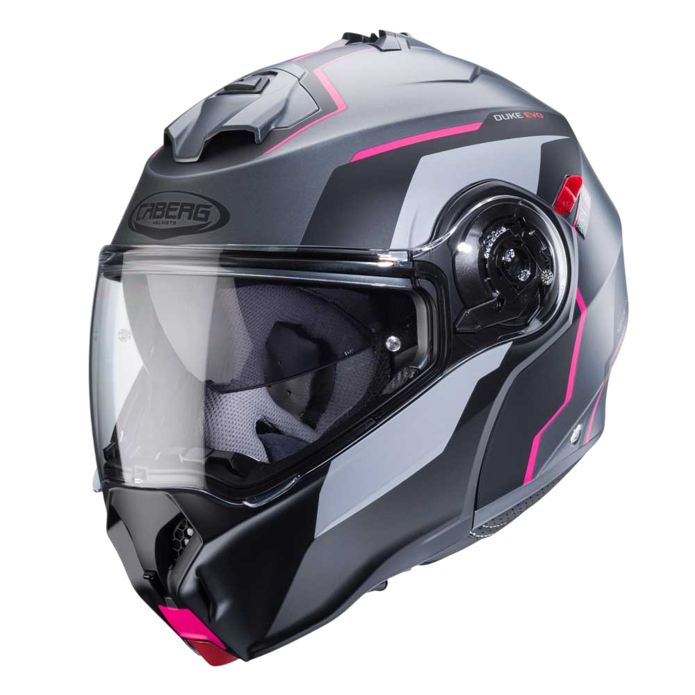 Duke Evo Move Matt Gun Metal & Fuchsia Motorbike Helmet