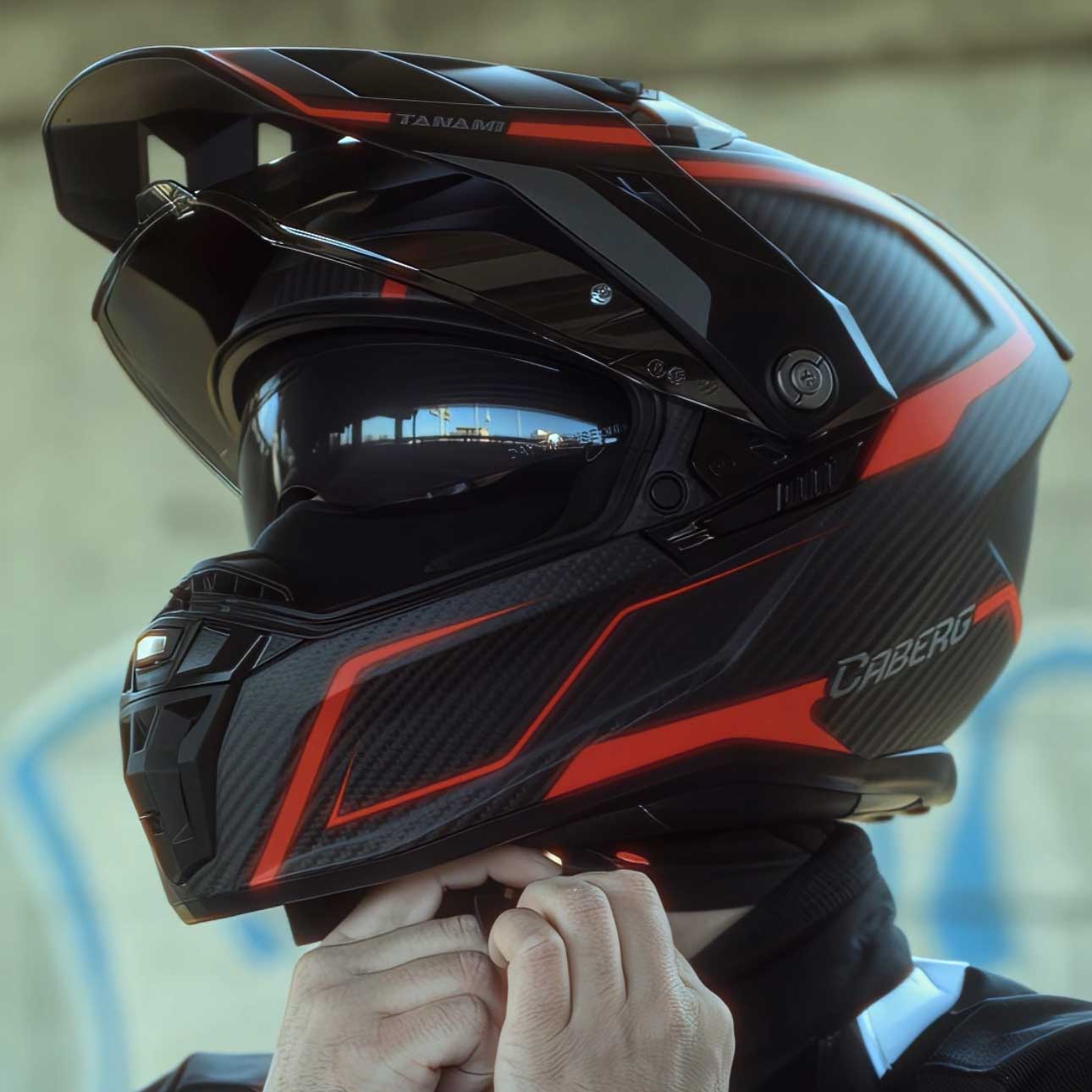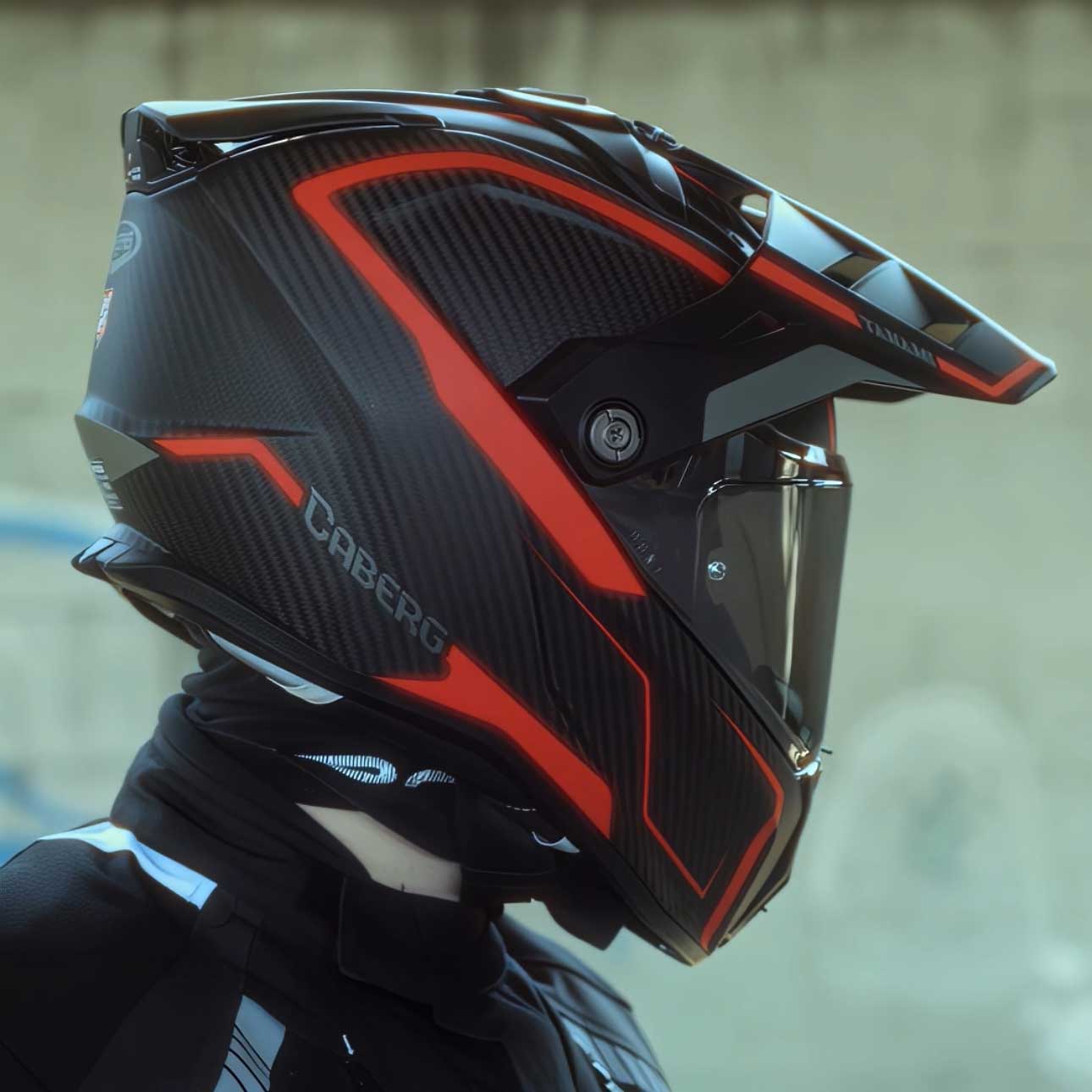 Tanami Carbon Gravity Red & Grey Full Face Motorbike Helmet