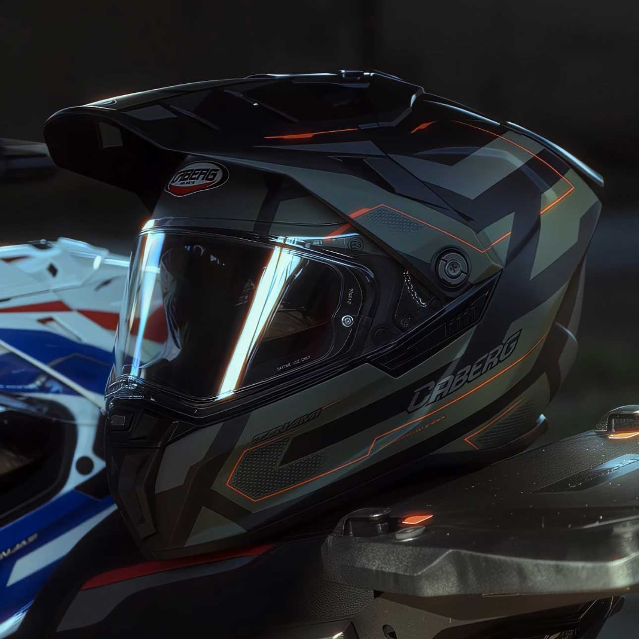Tactical styling meets adventure-ready protection in the Tanami Ranger Matt Black, Military Green & Orange full face helmet. This lid is engineered for riders who live for the off-road and on-road grind, rugged construction that delivers certified impact protection whether you're tackling dual-sport trails or urban commutes. The reinforced shell meets strict safety standards while the lightweight build keeps you comfortable on those all-day adventures. This is gear built for riders who push boundaries.