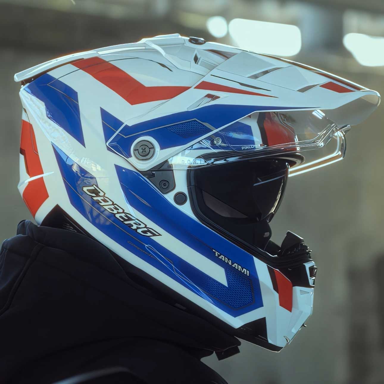 Tanami Scram White, Red & Blue Motorbike Helmet
